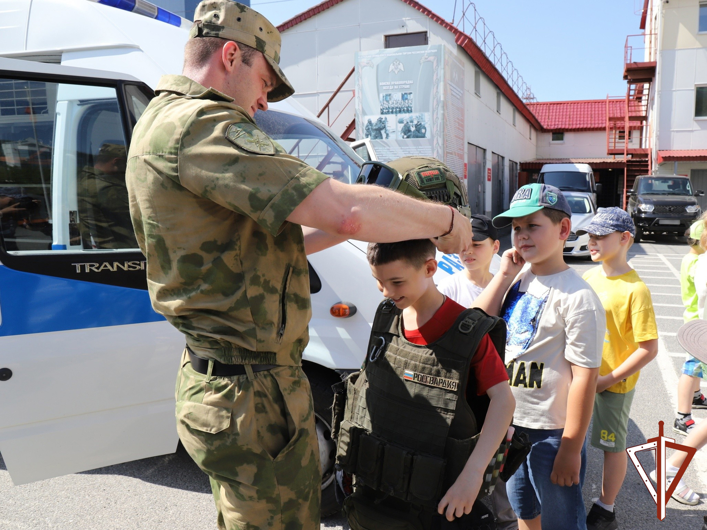 Ребята в возрасте от 7 до 12 лет узнали об основных вехах в истории войск правопорядка и о том, как сегодня проходит служба военнослужащих и сотрудников Росгвардии по охране общественного порядка и обеспечению общественной безопасности.