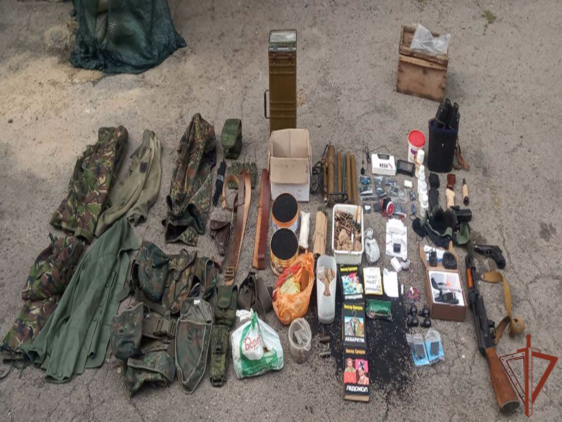 В ходе обследования по адресу проживания гражданина был обнаружен схрон, в котором найден АК-74, травматический пистолет, ящик дымного пороха, порох для изготовления детонаторов, собранные самодельные взрывные устройства, элементы для сбора СВУ, патроны, переносная радиостанция, 4 комплекта военной формы одежды со знаками различия НАТО, бундесвера, вооруженных сил Великобритании, два разгрузочных жилета и трекеры.