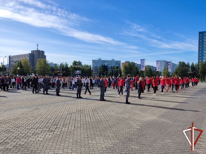 А в Нижневартовске в этом году сотрудники вневедомственной охраны приняли участие в торжественном флэш-мобе вместе с жителями города у спорткомплекса «Олимпия».