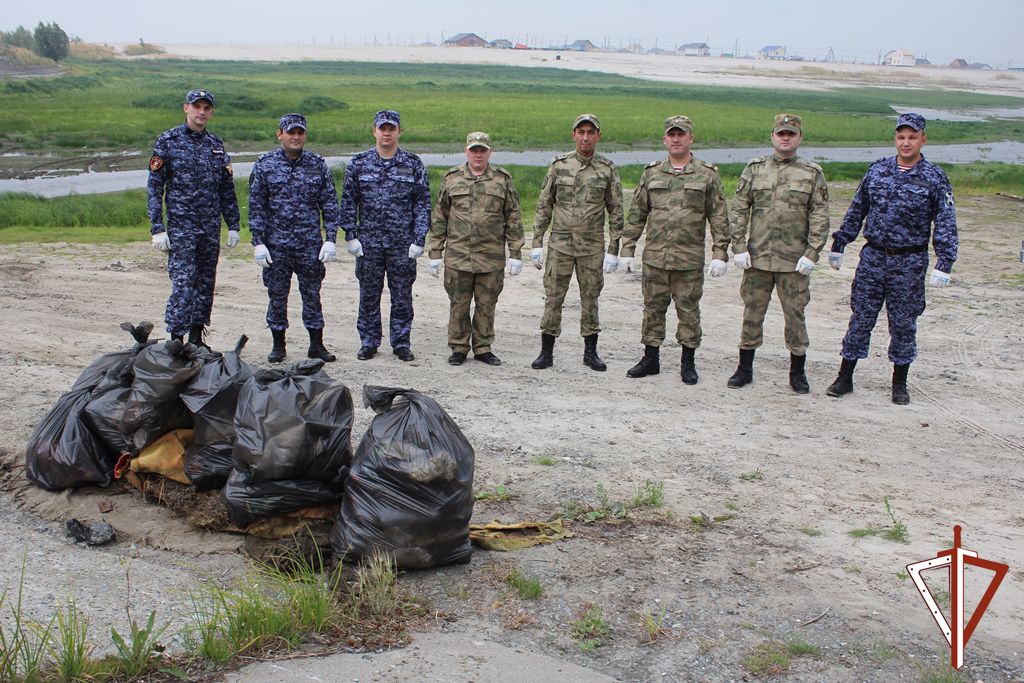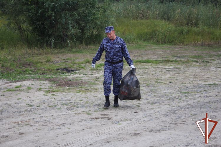 Росгвардейцы очистили территорию протяжённостью почти два километра от бытового мусора, наносящего вред экосистеме протоки, впадающей в одну из самых протяженных рек России – Иртыш.