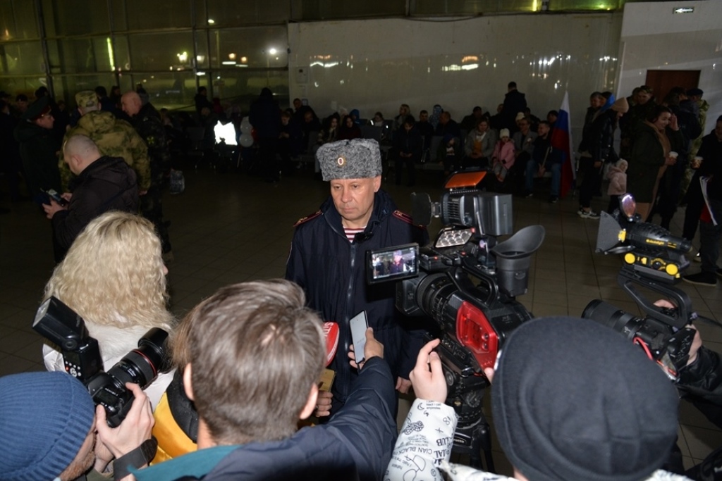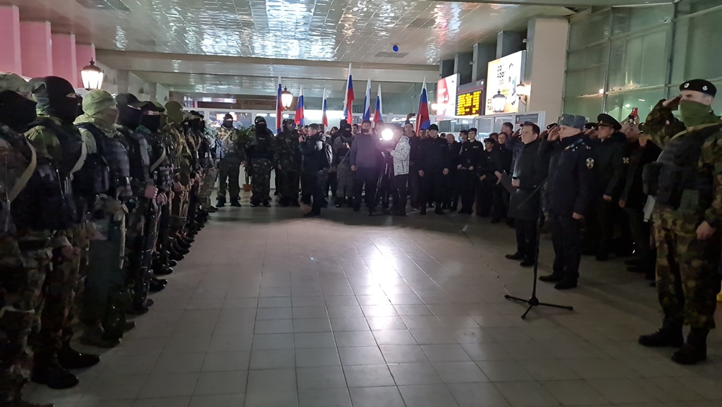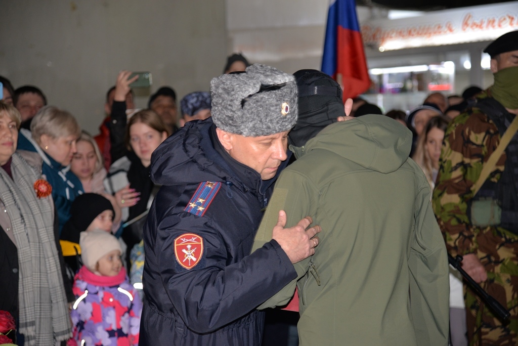 На железнодорожном вокзале Сургута состоялась торжественная встреча бойцов ОМОН «Стерх» Управления Росгвардии по ХМАО – Югре, вернувшихся из служебной командировки по защите мирных жителей Донецкой и Луганской народных республик.