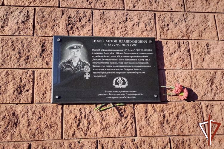 В этот же день офицеры Росгвардии почтили память минутой молчания у мемориальной доски военнослужащему внутренних войск рядовому Антону Тихон, погибшему при выполнении боевой задачи в 1999 году на Северном Кавказе.