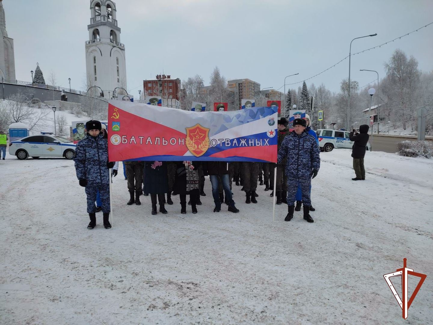 В Ханты-Мансийске в Храме Воскресения Христова росгвардейцы присутствовали на панихиде в память о погибших защитниках Отечества, после которой возглавили шествие «Батальона Отважных». В составе колонны ¬- родственники погибших, студенты, школьники, кадеты, юнармейцы, представители органов государственной власти, общественности, а также ветеранских организаций. Участники шествия держали в руках штендеры с портретами погибших защитников Отечества.