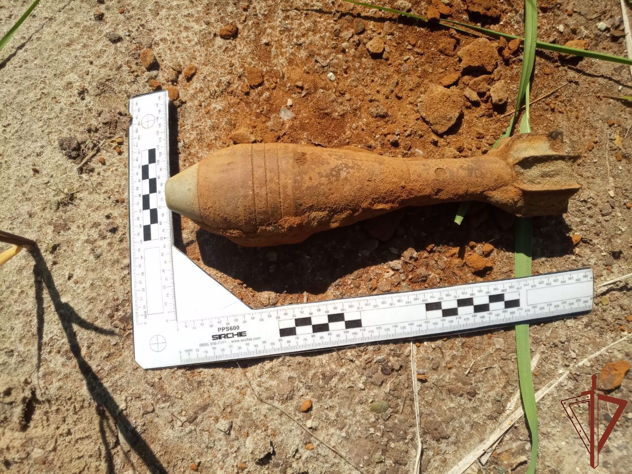 На место происшествия незамедлительно выдвинулись специалисты группы разминирования ОМОН «Стерх». При идентификации было установлено, что обнаруженный предмет является боевой 50-мм немецкой минометной миной времен Великой Отечественной войны, содержащей в себе порядка 115 г тротила.