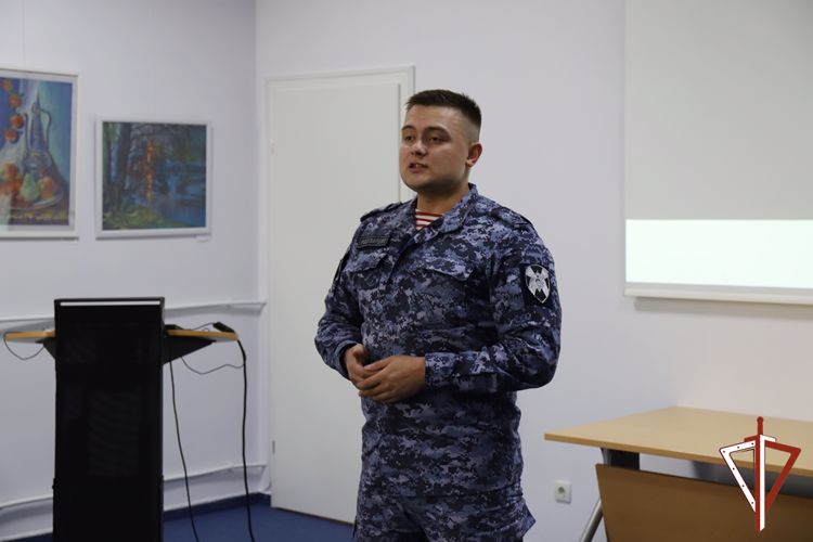 Офицер Росгвардии выступил с лекцией по противодействию терроризму и экстремизму перед курсантами военного учебного центра в столице Югры