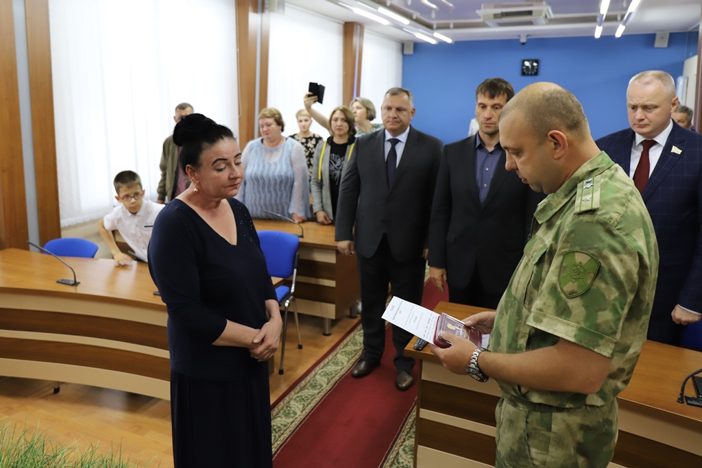 В администрации города Пыть-Яха состоялась церемония передачи ордена Мужества Светлане Александровне Зориной – матери военнослужащего отдельного отряда специального назначения войск национальной гвардии России сержанта Данила Зорина, героически погибшего во время проведения специальной военной операции по защите мирных жителей Донецкой и Луганской народных республик.