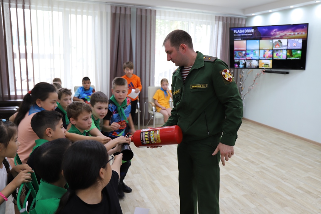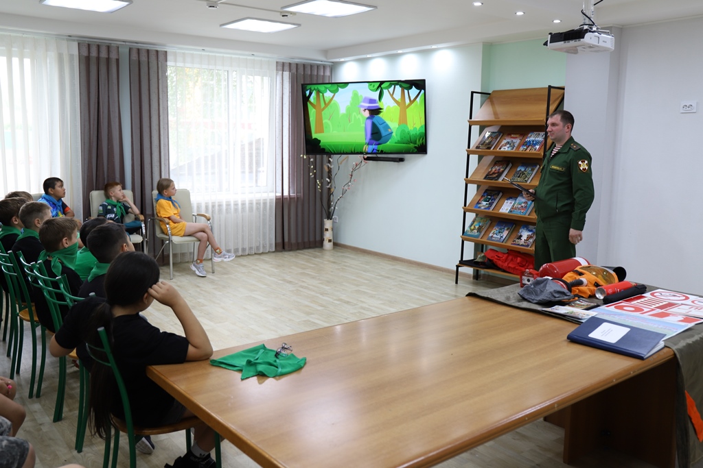 Начальник инспекции пожарной безопасности территориального управления Росгвардии майор Николай Пилипенко в игровой форме, с использованием учебно-материальной базы, рассказал ребятам о причинах возникновения пожаров в лесах и правилах обращения с огнем, объяснил принцип работы ручных пожарных извещателей и сигнализаций и порядок действий при обнаружении пожара.