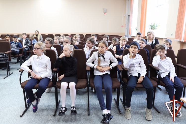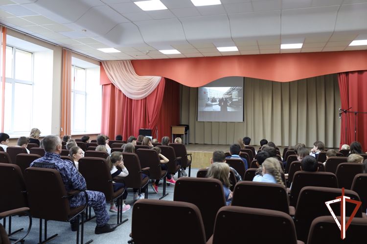 В продолжение мероприятия капитан полиции Рустам Ризаев продемонстрировал учащимся документальный фильм киностудии Росгвардии «56 огненных дней. 10-я стрелковая дивизия НКВД СССР», после чего ответил на накопившиеся вопросы ребят.