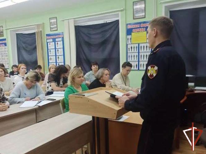В Лангепасе представитель вневедомственной охраны лейтенант полиции Максим Митькин встретился с педагогическим составом городского политехнического колледжа и школы № 5. Росгвардеец рассказал присутствующим о мерах безопасности при угрозе совершения террористического акта и обнаружении подозрительных предметов.
