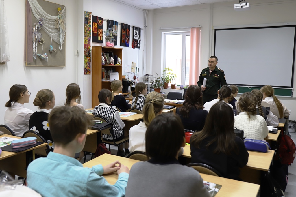 В рамках мероприятия заместитель начальника территориального органа Росгвардии по военно-политической работе подполковник Михаил Тремасов провел внеклассное мероприятие для учащихся 7-х и 8-х классов отделения общеобразовательных и гуманитарных дисциплин Центра искусств для одаренных детей Севера. В ходе встречи офицер ведомства рассказал о самоотверженной обороне города на Волге, бессмертных подвигах воинов 10-ой ордена Ленина стрелковой дивизии войск НКВД СССР и дал наставление конкурсантам по подготовке работ. В качестве визуального материала был использован документальный фильм киностудии Росгвардии «56 огненных дней. 10-я стрелковая дивизия НКВД СССР».
