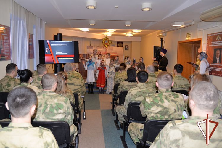 В тожественном митинге принял участие председатель отдела по взаимодействию с казачеством и силовыми структурами Ханты-Мансийской епархии иерей Евгений Кизин вместе с воспитанниками Воскресной школы при Кафедральном Соборе Воскресения Христова, он поздравил военнослужащих и сотрудников с Рождественскими святками и пожелал присутствующим почерпнуть информацию, умения и навыки, необходимые для успешного выполнения задач по предназначению.