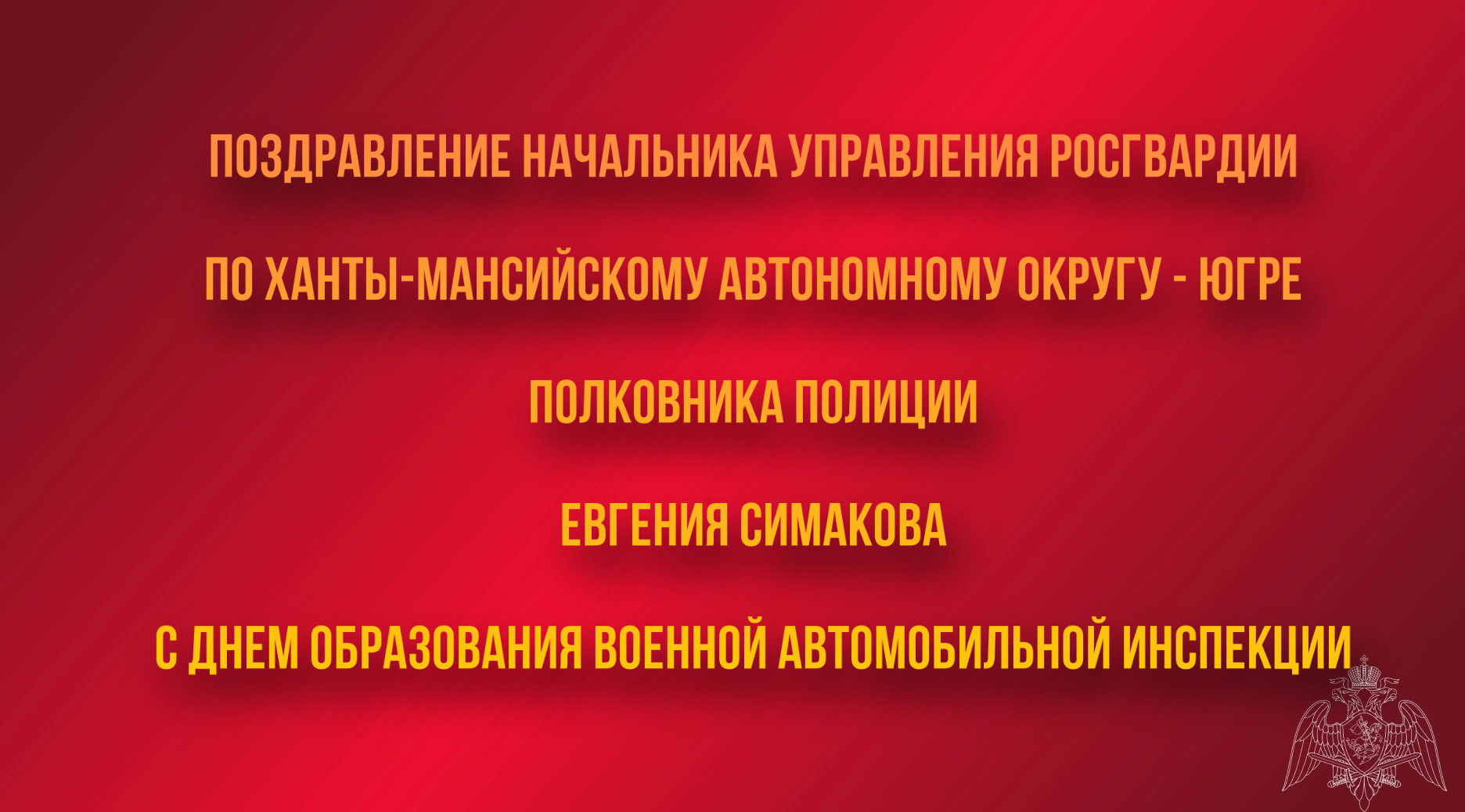 Поздравление начальника Управления Росгвардии по Ханты-Мансийскому автономному округу – Югре с Днем образования военной автомобильной инспекции