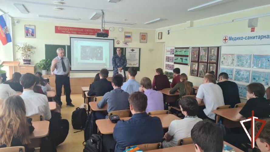 В Сургуте заместитель командира батальона полиции межмуниципального отдела вневедомственной охраны майор полиции Илья Ермоленко, а также участник специальной военной операции – сотрудник ОМОН «Стерх» старший лейтенант полиции Борис Х.– встретились со старшеклассниками 29-ой городской школы и рассказали ребятам о героях Великой Отечественной войны 1941-1945 годов, а также о мужественных поступках нынешних росгвардейцев, которые отстаивают честь нашей Родины. Р Р