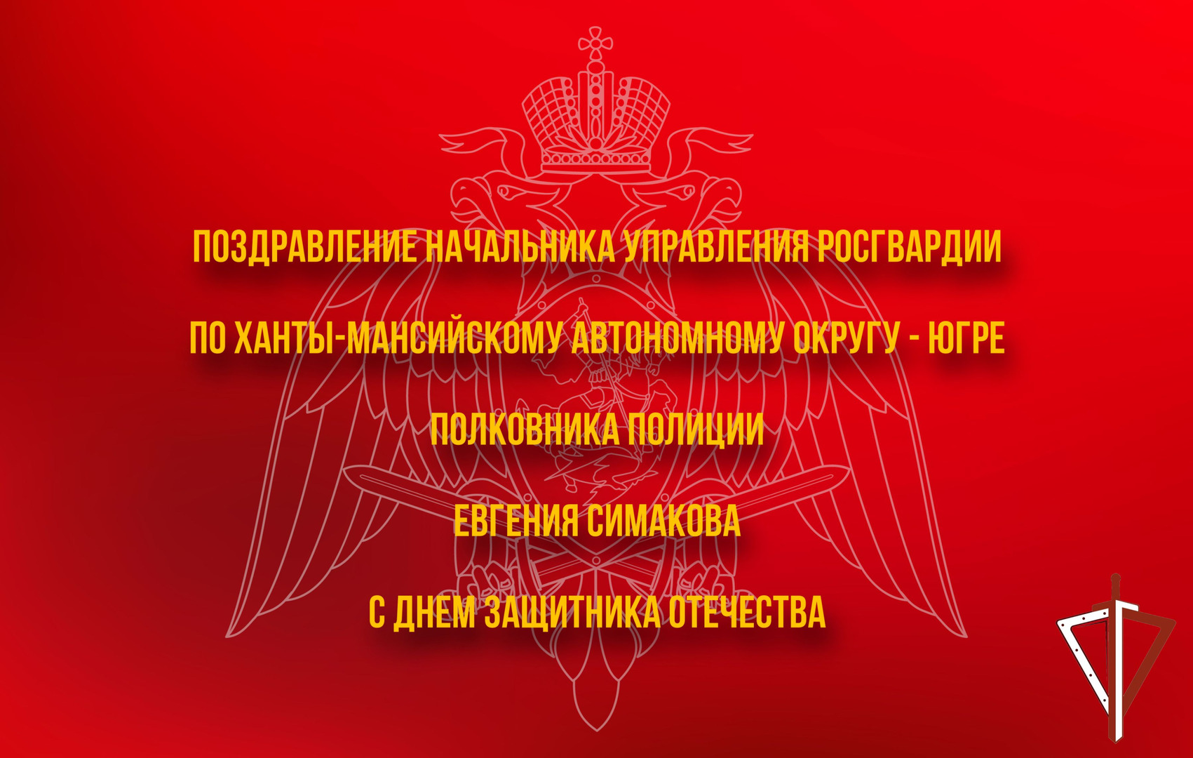 Поздравление начальника Управления Росгвардии по Ханты-Мансийскому автономному округу – Югре полковника полиции Евгения Симакова с Днем защитника Отечества