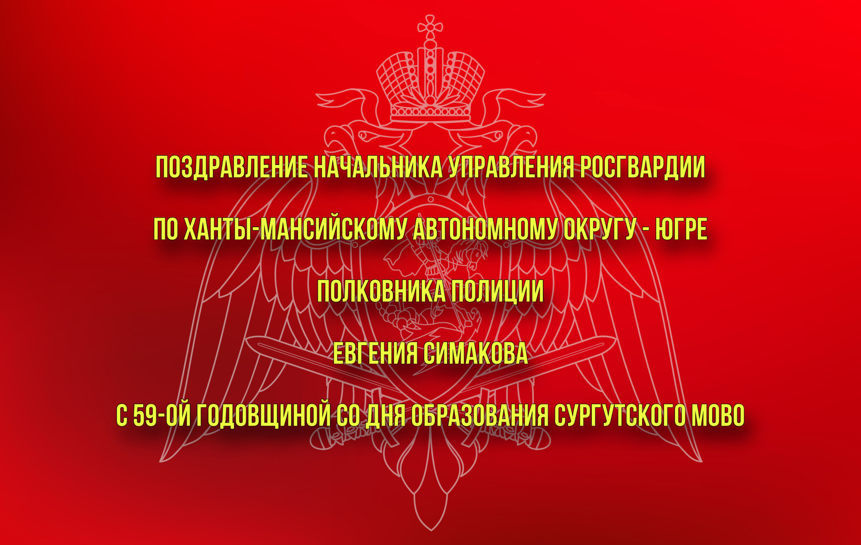 Поздравление начальника Управления Росгвардии по Ханты-Мансийскому автономному округу – Югре с 59-ой годовщиной со Дня образования Сургутского МОВО