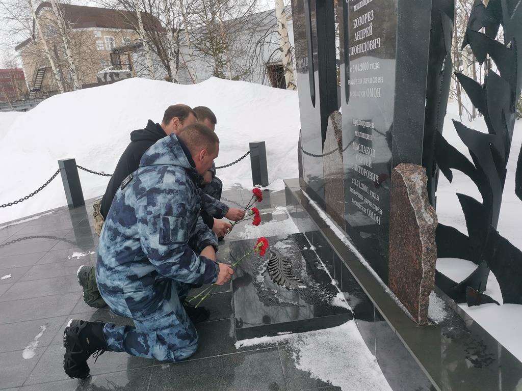 В подразделениях Управления Росгвардии по ХМАО – Югре ветераны службы, сотрудники ОМОН, СОБР и вневедомственной охраны минутой молчания почтили память боевых товарищей, после чего возложили цветы к памятникам в честь погибших сослуживцев.