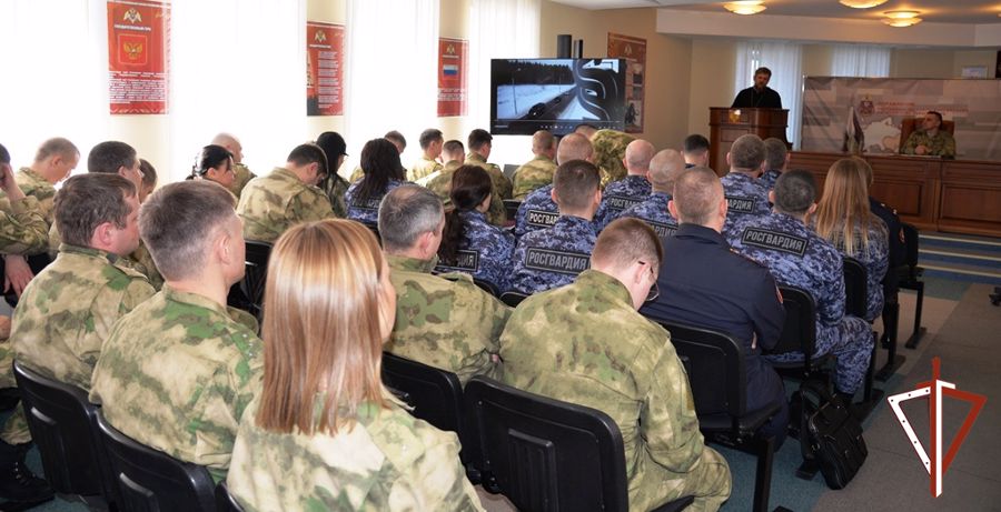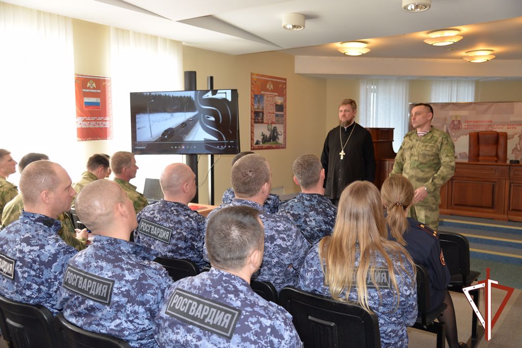 Встреча прошла в виде диалога с росгвардейцами, которые узнали об изменениях законодательства в части соблюдения правил дорожного движения, о состоянии аварийности на дорогах Ханты-Мансийского автономного округа – Югры, наиболее распространенных нарушениях, совершаемых водителями на обслуживаемой территории, а также об административной и уголовной ответственности в области дорожного движения. Иерей Вадим Павловский дал духовные наставления личному составу ведомства.