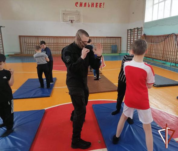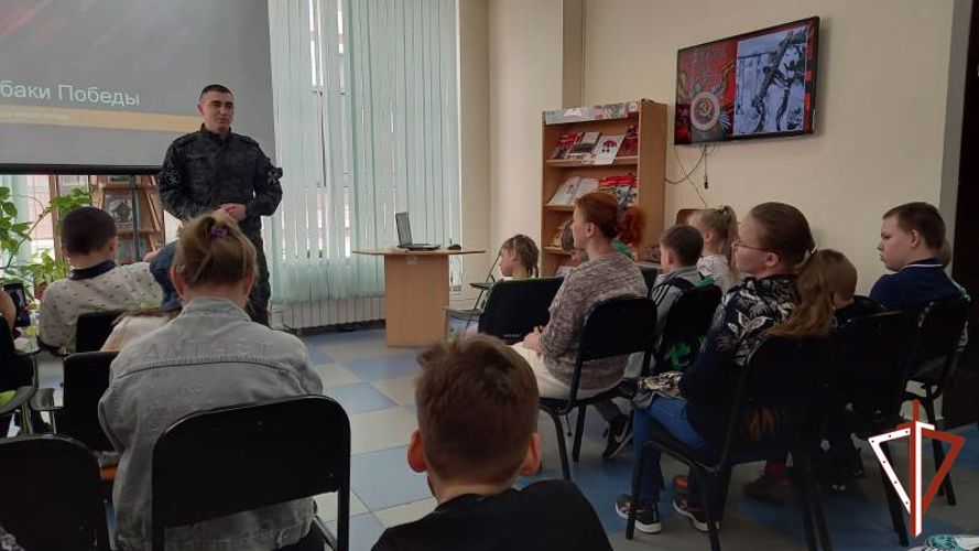 Росгвардейцы рассказали детям о важности любви к Родине, а также об особенностях службы в подразделениях Росгвардии.