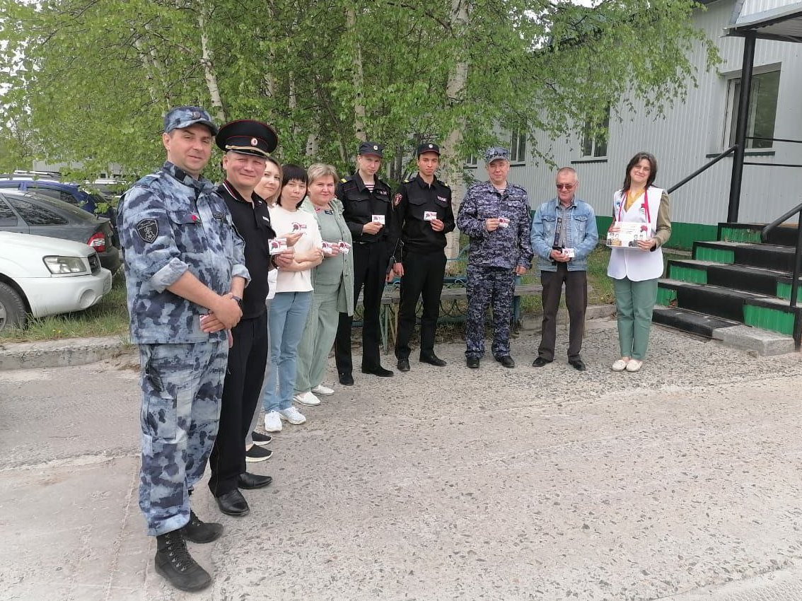 Также в рамках традиционной акции «Красная гвоздика» представители ведомства приобрели у активистов общественного движения «Волонтеры Победы» значки в виде цветка гвоздики, символизирующего кровь русских воинов, пролитую за Отечество.