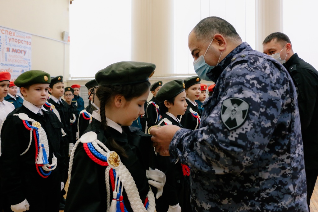 Офицеры Росгвардии приняли участие в церемонии посвящения учащихся нижневартовской школы в кадеты ведомства
