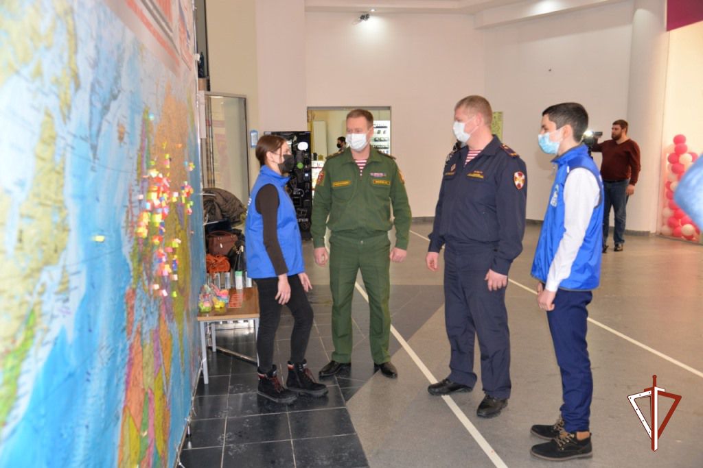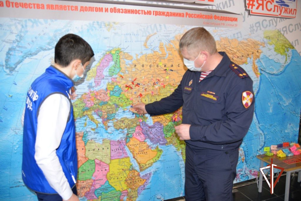 Начальник отдела государственного контроля Управления Росгвардии по ХМАО – Югре майор полиции Николай Горбатенко отметил флажком на карте город Темрюк Краснодарского края и рассказал о своей службе в 2000-х годах в морских частях погранвойск – командиром отделения рулевых на корабле, носящем название родного города – «Ханты-Мансийск».