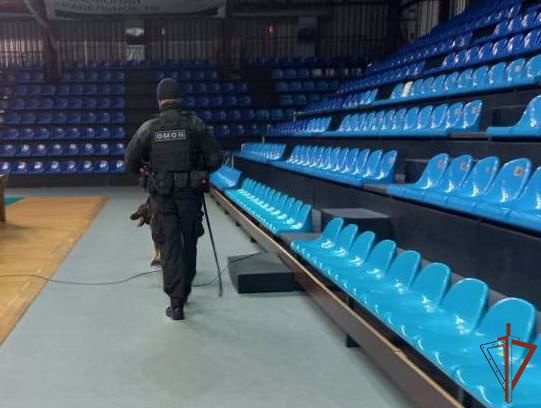 Перед началом состязаний специалисты группы разминирования ОМОН со служебной собакой обследовали прилегающую территорию и помещения внутри спортивного объекта на отсутствие взрывоопасных предметов и взрывчатых веществ. На время проведения турнира создан резерв из бойцов спецподразделения.