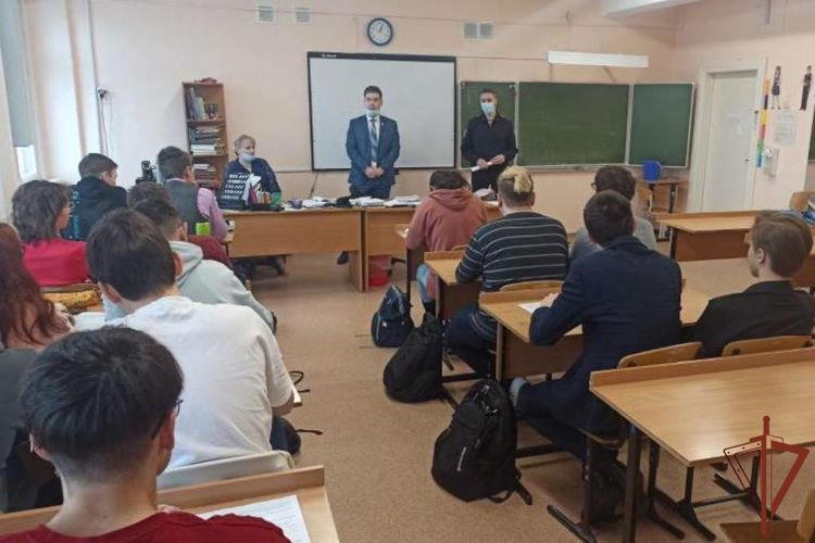 В Ханты-Мансийске на площадке Государственной библиотеки Югры росгвардейцы рассказали учащимся кадетских классов средней общеобразовательной школы № 8 об истории войск правопорядка России.