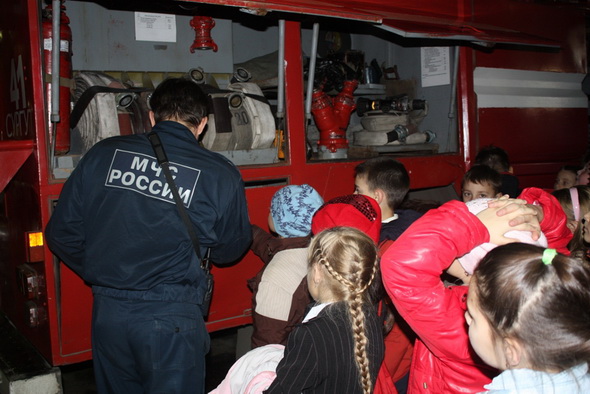 личный состав дежурных караулов демонстрировал детям выезд пожарной техники и