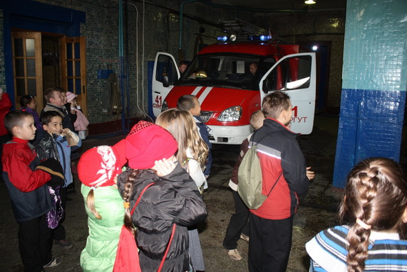 кабине пожарной машины и примерить боевое снаряжение.