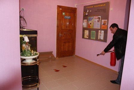 С вводной «В холле 1 этажа пожар и сильное задымление », заданной инструктором по пропаганде и взаимодействию со СМИ Запьянцевой Светланой, начались учения. Обстановку условного пожара красочно имитировали разноцветные макеты пламени огня.