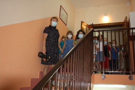 Дежурный вахтер оперативно позвонила по прямой телефонной связи в единую службу спасения «01», затем по громкой внутренней связи объявила эвакуацию детей. Малыши послушно выполняли указания воспитателей, умело надели защитные маски и без суеты и паники направились к эвакуационным выходам. Обслуживающий персонал в это время занимался тушением условного пожара и встречал пожарные подразделения.