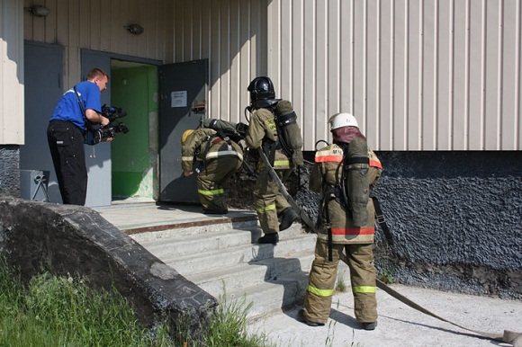 учреждения. По легенде учений пожар возник в помещении актового зала от
