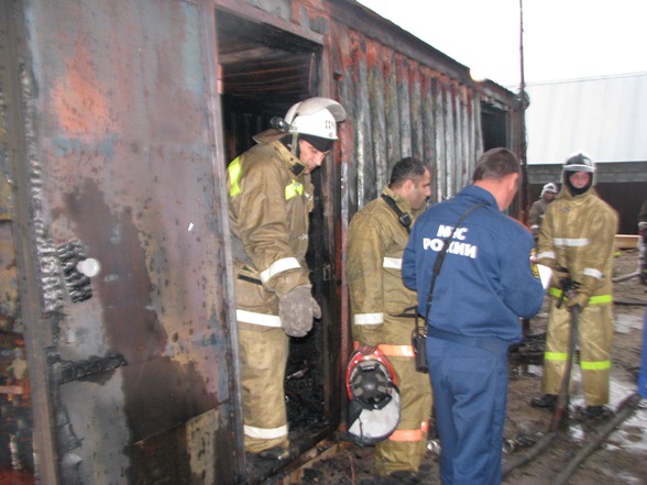 углу контейнера сильно обгоревший труп человека. Одновременно с этим пожар был