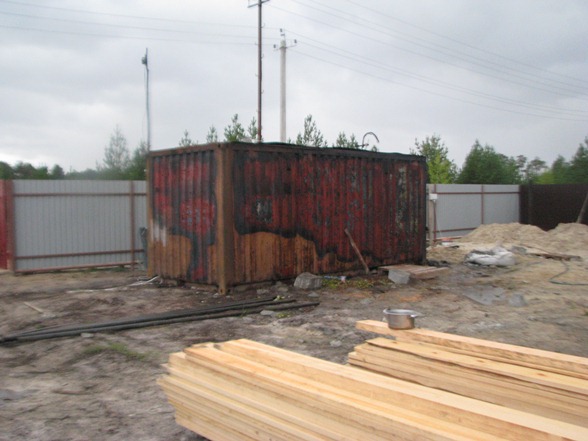 расположились баня, дачный дом и цельнометаллический контейнер, который,