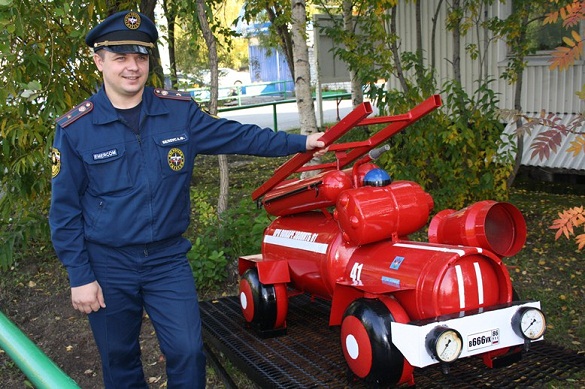 И все-то они успевают: и пожары тушить, и людей спасать, да еще и радовать жителей Сургута своими неординарными идеями! Речь идет о коллективе 41 пожарной части 1 отряда федеральной противопожарной службы. Меньше месяца назад инициативная группа части дружно принялась за работу по созданию второй скульптуры – пожарной автомашины. Ведь пожарный-то уже есть! Знаменитый Паленый вот уже больше 2 месяцев украшает фасад здания части и радует глаз прохожих. «Но какой пожарный без машины?», - подумали его коллеги и решили сделать горожанам еще один сюрприз в виде второй скульптуры. Как и в прошлый раз работали сообща: разработали эскиз, подбирали составные части, изготовили крепкий постамент. Благо нашлись неравнодушные горожане, которые оказали огнеборцам свою посильную помощь! Ну и конечно работа снова кипела в родных стенах – гаражных боксах части. Есть в 41-й умельцы, которые не только могут придумать, но и воплотить в жизнь свои идеи! «Мы надеемся, что наш сюрприз понравится всем жителям Сургута и, особенно, детворе. Приглашаем всех желающих полюбоваться скульптурами и, конечно, сделать фото на память!», - подчеркнул исполняющий обязанности начальника 41 пожарной части Анатолий Белоус. Ну а мне в свою очередь остается добавить, что такой эксклюзивный подход огнеборцев к своей работе стал еще и неплохим средством пожарной профилактики, ведь собраны фигурки из всевозможного пожарного снаряжения, которое не раз применялось на пожарах и, возможно, помогло спасти чью-то жизнь. Пока Анатолий Федорович рассказывал мне о том, из чего изготовлена пожарная автомашина, как трудились его коллеги над созданием скульптуры, насколько скрупулезно подбирали они материалы для ее изготовления, появились первые посетители импровизированной экспозиции. Причем, как среди детей, так и взрослых! Результаты творчества пожарных вызвали неподдельный интерес у горожан, проходивших мимо пожарной части. Остается только надеяться на их сознательность и бережливость, ведь, как сообщалось ранее, Паленому уже «досталось» от вандалов. Теперь в планах у пожарных скульпторов протянуть от машины к фигуре пожарного настоящий рукав. В своих крепких металлических руках по их замыслу он будет держать пожарный ствол, из которого, скорее всего, будет «бить» пена – застывшая ее имитация. Ну а пока Паленый и его автомобиль не только стоят на страже родного города, но и символизируют всю мощь и боеготовность сургутской пожарной охраны!
