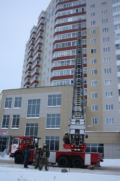 учения по тушению условного пожара в частично заселенном жилом 16-этажном доме