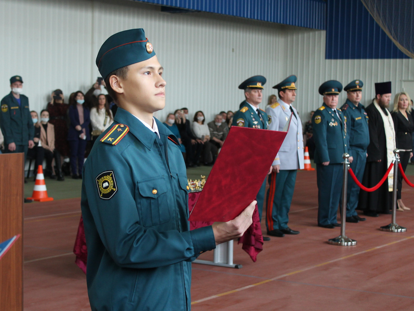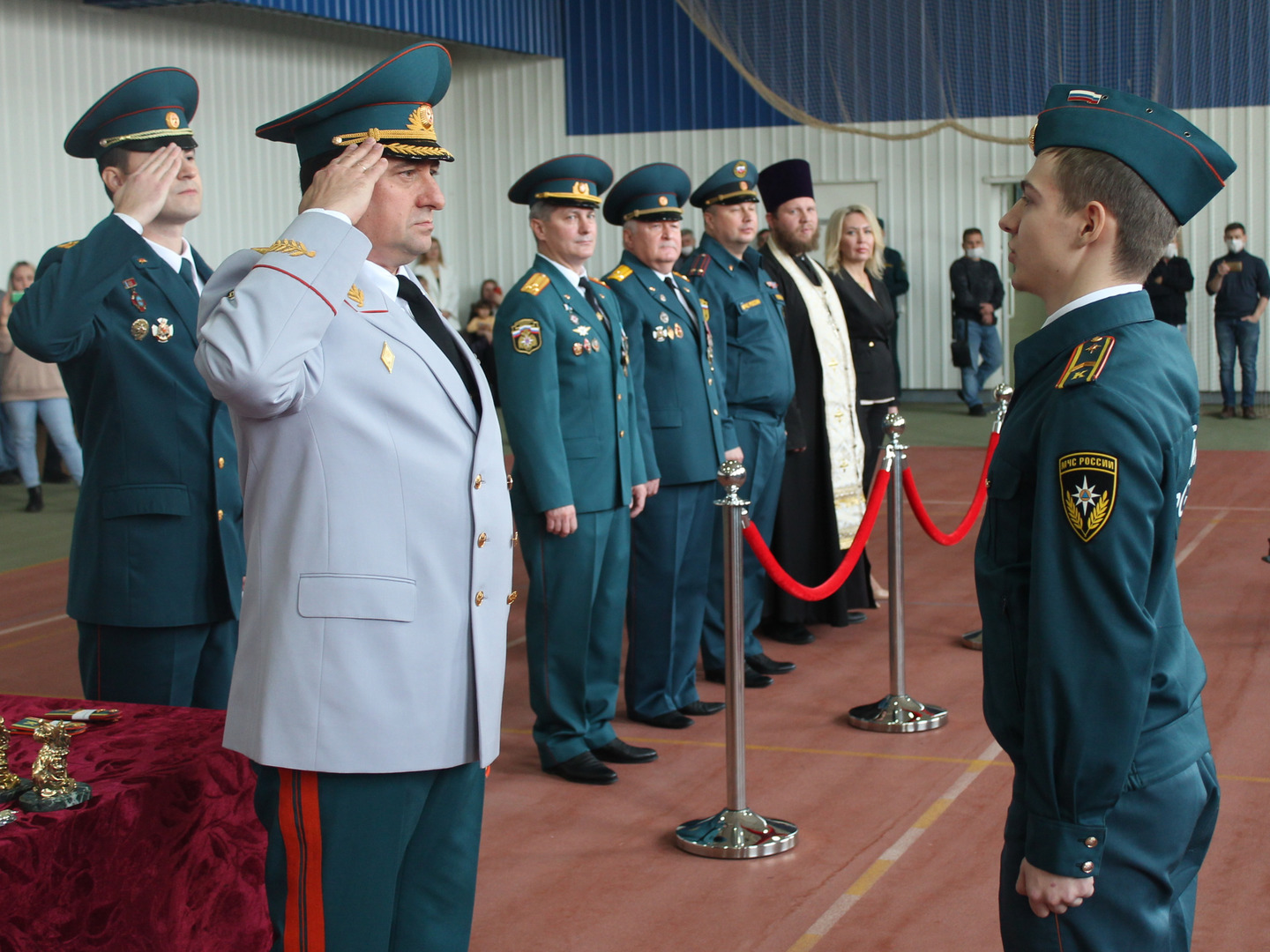 После вручения удостоверений и отличительных знаков отец Андрей провёл церковный обряд освещения и благословения курсантов, пожелал им крепости духа и достижение их целей.