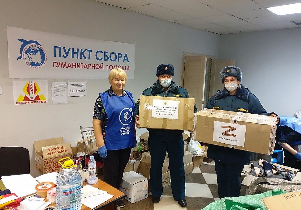 В октябре 2022 года коллектив ФГБУ «11 отряд ФПС ГПС по Ханты-Мансийскому автономному округу – Югре (договорной)» по собственной инициативе организовал акцию «МЧС в поддержку СВО» по сбору помощи для добровольцев и военнослужащих, которые участвуют в специальной военной операции по защите Донбасса. Работники отряда собрали теплое белье и перчатки, продукты питания, медикаменты и перевязочные материалы.