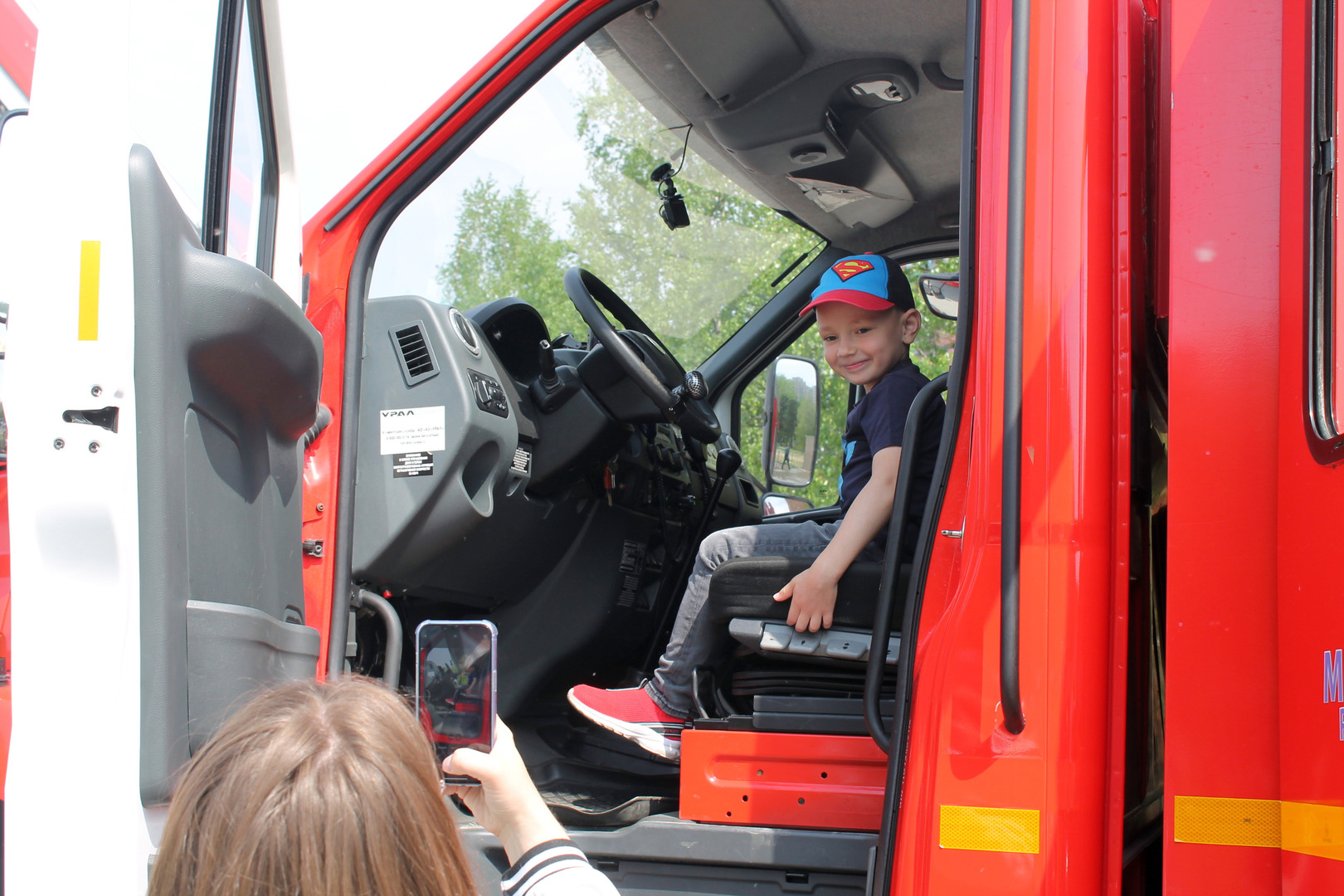 Каждый автомобиль можно было рассмотреть, как снаружи, так и внутри, и, конечно же, сфотографироваться. Пожарные продемонстрировали подачу боевых стволов, надевание пожарной одежды и многое другое. Каждый из ребят мог исполнить свою детскую мечту и побывать в роли настоящего героя - дети с большим удовольствием соревновались в том, кто быстрее собьет мяч струей воды из ручного пожарного ствола.