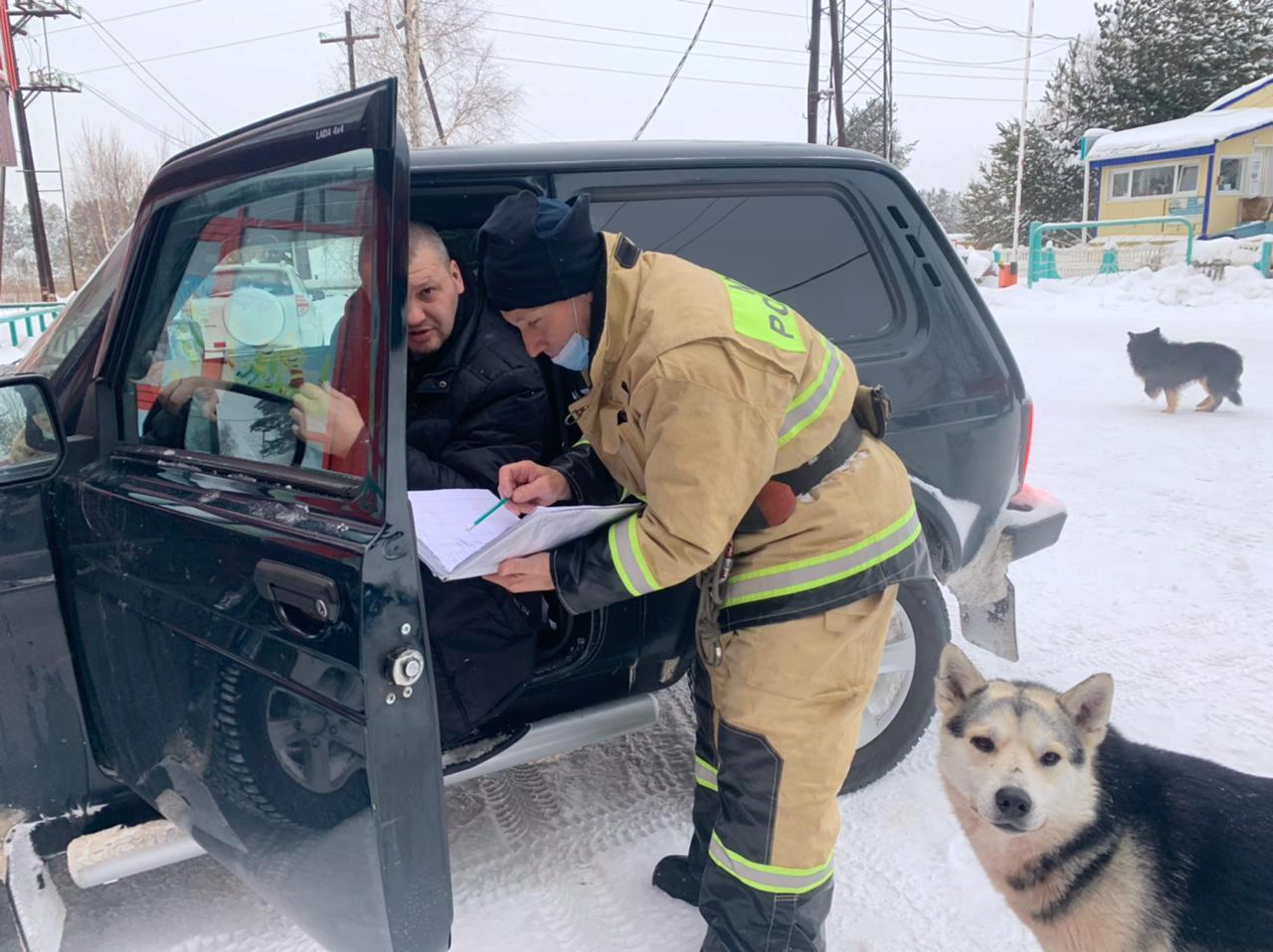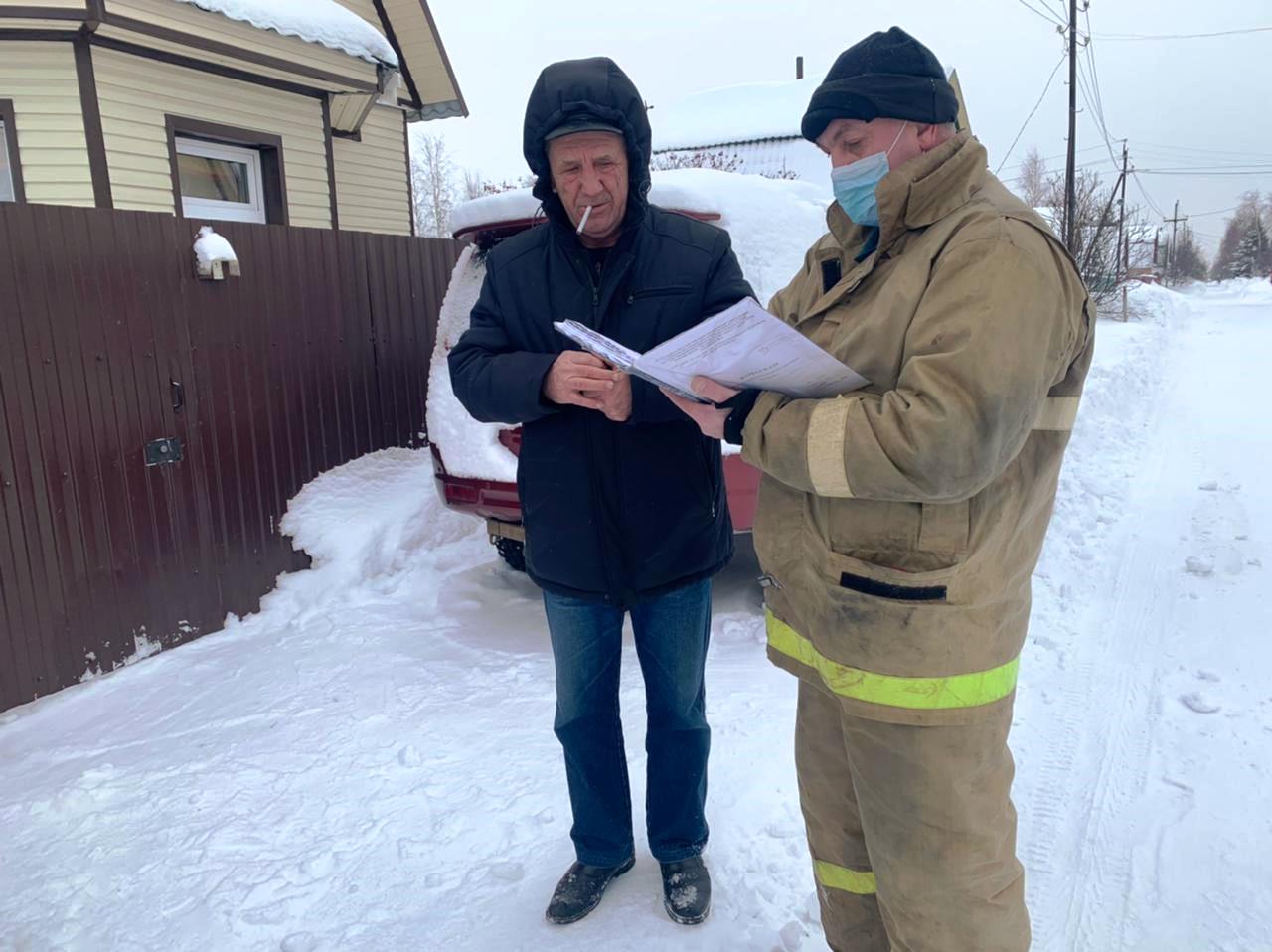Высокая нагрузка на электрические сети, использование электрообогревательных приборов, печное отопление в домах и банях – все это создает повышенную опасность возгораний. Поэтому профилактическая работа с населением проводится здесь на постоянной основе. Работники 131 ПСЧ намеренно выезжают в рейды в выходные дни – выше вероятность застать дома как можно большее количество людей для того, чтобы объяснить и в очередной раз напомнить правила пожарной безопасности.
