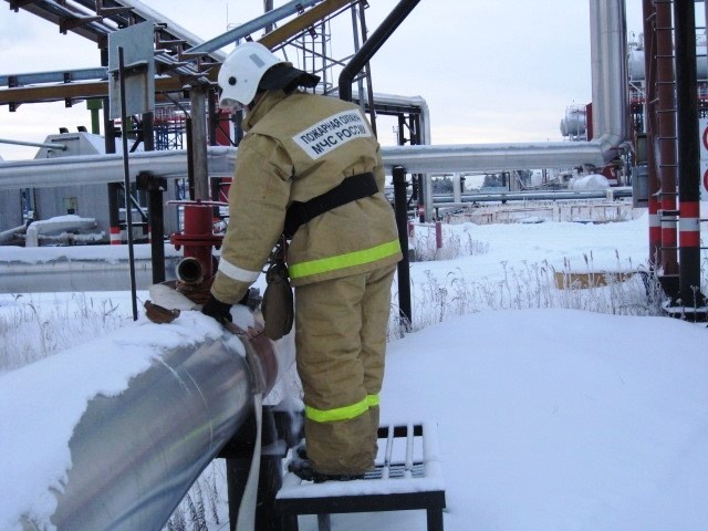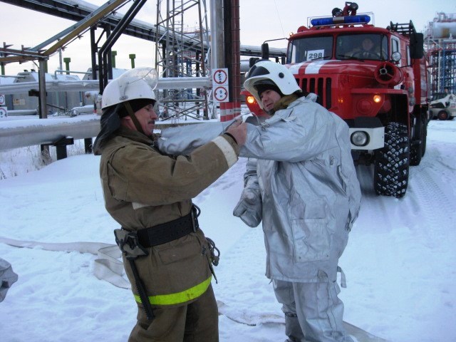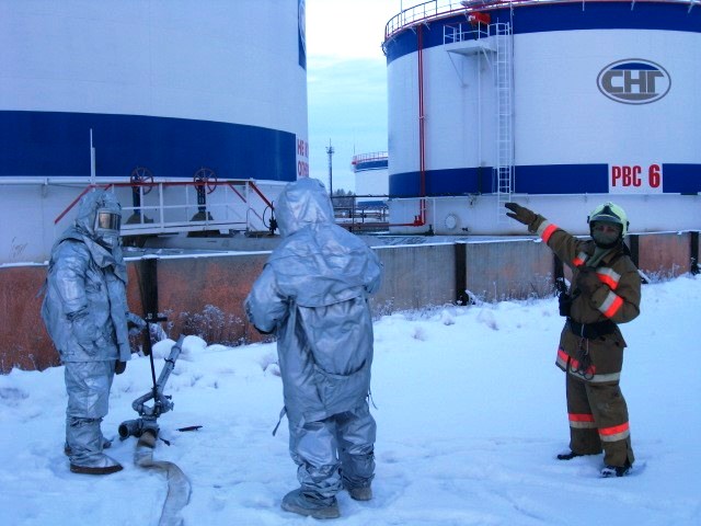 Очередное пожарно-тактическое занятие в 108 пожарно-спасательной части прошло в декабре 2021 года на одном из объектов НГДУ «Быстринскнефть». Личный состав отработал действия по тушению условного пожара на резервуаре для хранения товарной нефти объемом 5000 м.куб. В случае реального возгорания на взрывопожароопасных объектах дело идет на секунды, поэтому четкие и слаженные действия пожарных должны быть доведены до автоматизма. Так, например, на экипировку пожарного в теплоотражательный костюм ТОК-200 отводится не более 80 сек, а без этого снаряжения приступать к тушению нефтепродуктов нельзя.