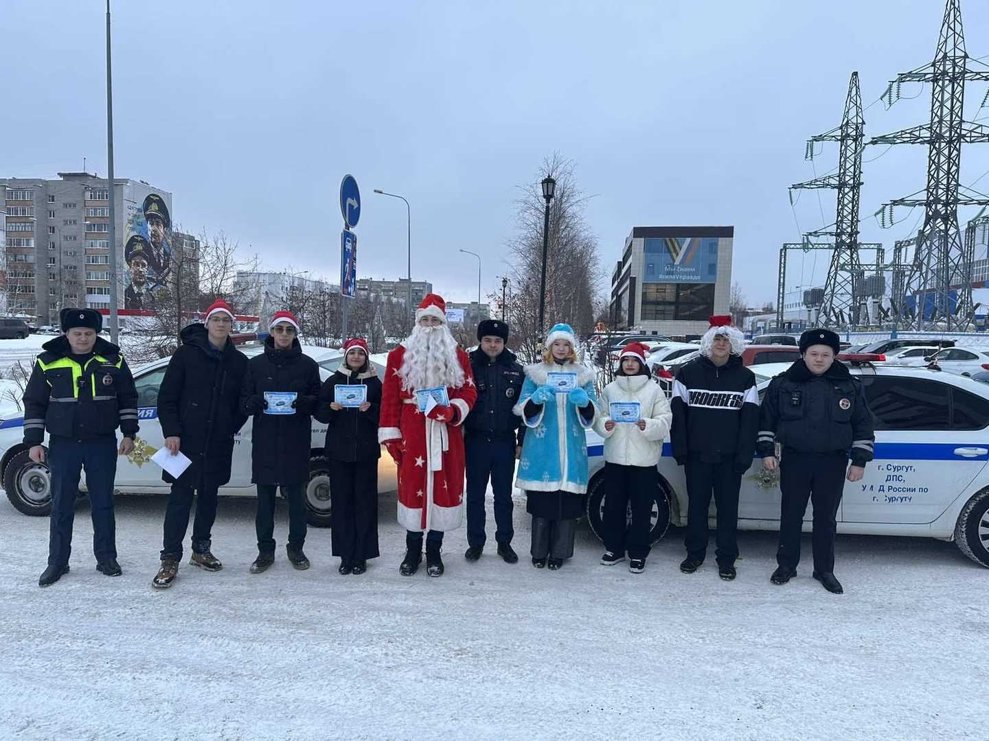 На улицах Сургута Дед Мороз и Снегурочка поздравили участников дорожного движения. Экипаж ДПС останавливал транспортные средства, сказочные герои поздравляли с Новым годом, обращаясь к автомобилистам и их пассажирам, с призывом строго соблюдать Правила дорожного движения, а также меры личной безопасности, предостерегали участников дорожного движения о дорожных опасностях в зимнее время и различных дорожных «ловушках». Дети-пассажиры рассказывали стихи и пели песни, получали подарки. Роль добрых волшебников примерили и студенты Сургутского политехнического колледжа. Вместе с госавтоинспекторами они поздравляли участников дорожного движения и проводили профилактику безопасности дорожного движения.