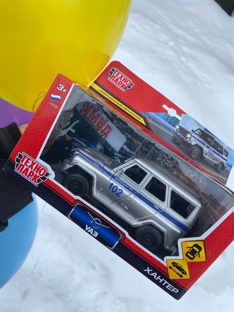 Как стало известно, Ваня с мамой иногда гуляют в районе городского Управления МВД, но подойти просто так к полицейскому не решались. В День рождения они зашли на территорию Управления, и, к удивлению малыша, к нему «с мигалками» подъехал настоящий «УАЗ Патриот». А младший лейтенант внутренней службы Алина Кашапова и старший лейтенант полиции Андрей Коваленко поздравили именинника с первым юбилеем!