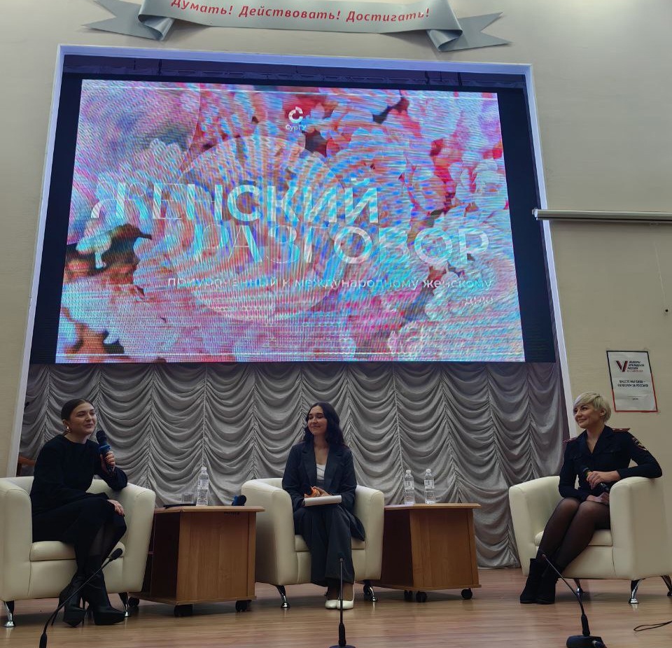 Оперуполномоченный отдела уголовного розыска майор полиции Алена Сергеевна Геншель приняла участие в ставшем традиционном мероприятии Сургутского Государственного университета «Женское счастье». На протяжении нескольких накануне праздника откровенный разговор на самые разные темы проходит между студентками и приглашенными спикерами – известными в Сургуте женщинами. В мероприятии приняли участие порядка трехсот студенток, а темой для беседы стала «роль матери в жизни семьи».