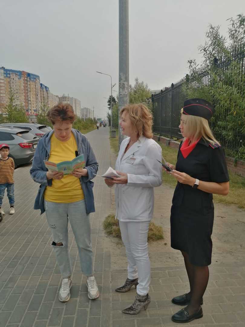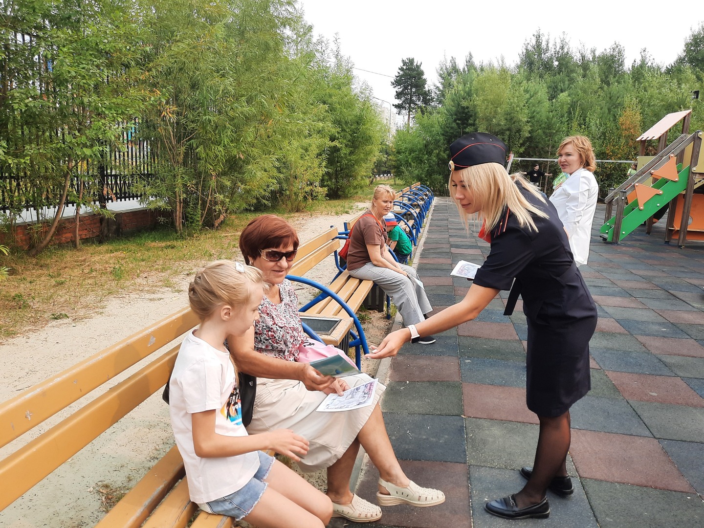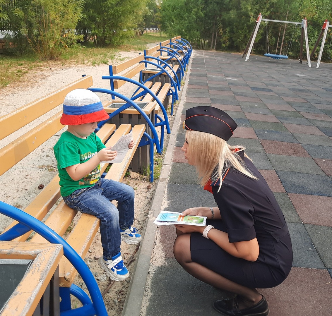 Инспектор по делам несовершеннолетних отдела полиции № 3 младший лейтенант полиции Елена Попушой и заместитель главного врача «Сургутской клинической травматологической больницы» Светлана Алиева на детских игровых площадках провели акцию «Не дай ангелу упасть»».