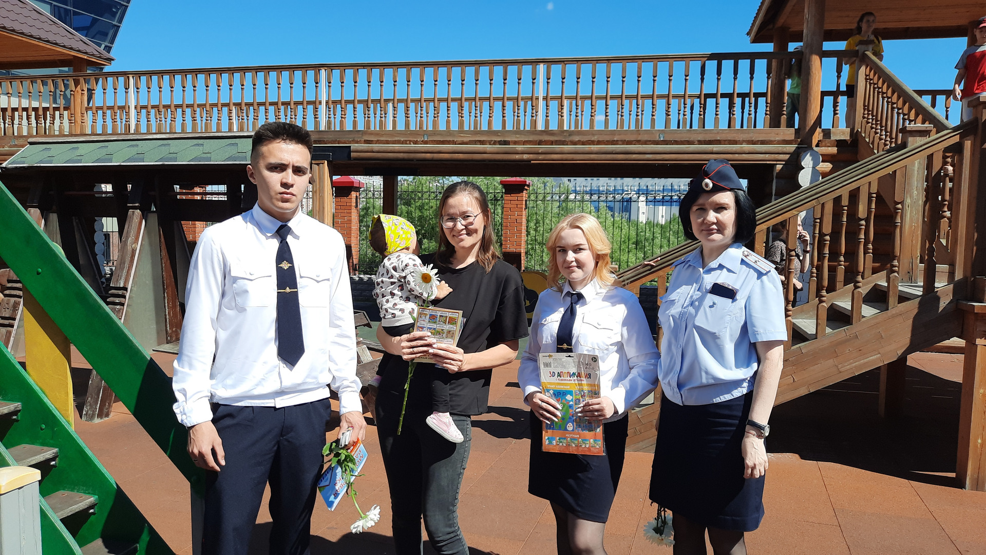 Сразу после успешной сдачи последнего экзамена к акции присоединились студенты факультета «Правоохранительная деятельность» «Сургутского института экономики, управления и права» Даниэль Салахов и Валерия. Будущие коллеги вместе с полицейскими рассказывали горожанам о празднике и дарили символ праздника – ромашки, а деткам – игрушки, материалы для творчества и сладости.