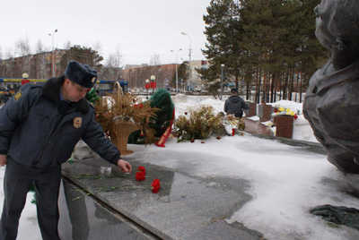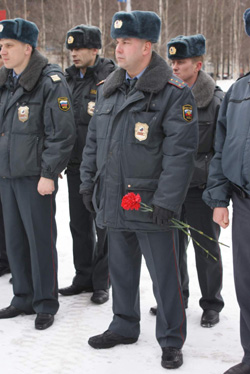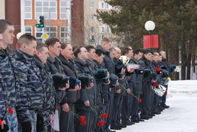 Каждый год сотрудники Сургутского УВД чтят память своих товарищей, погибших при исполнении служебного долга на Северном Кавказе Андрея Петрова и Ивана Шибельгута.