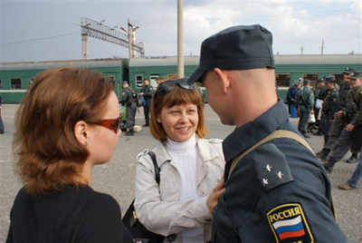 провожать отряд в Чечню на железнодорожный вокзал приехали родственники, друзья