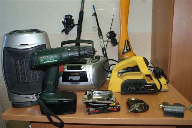 Сразу шесть уголовных дел раскрыли сотрудники уголовного розыска УВД по г. Сургуту, задержав автомобиль ВАЗ 2115. В салоне машины находились трое мужчин, а в багажнике строительные и электроинструменты без документов. На вопрос: «Чьи вещи?», милиционеры не смогли получить вразумительного ответа. Машина была остановлена не случайно, по оперативной информации в этом автомобиле преступники перевозили похищенное с дачных участков имущество. В ночное время злоумышленники взламывали двери в дома и бани в садовых товариществах «Прибрежный-2», «Ветеран», «Автомобилист» и брали все, что представляло хоть какую-либо ценность. При обыске в гараже одного из задержанных милиционеры изъяли электроинструменты, газонокосилки, удочки, магнитолы, обогреватели, замки, пепельницы. По шести уголовным делам имущество возвращено владельцам. Но есть вещи, владельцев которых установить не удалось. Всех, кто на фотографии узнал свое имущество, просят обращаться в УВД по г. Сургуту по телефону 62-74-12.
