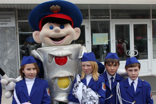 большие куклы – светофор и инспектор ДПС, которые понравились 10-летним ребятам